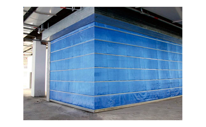 簾片:選用優(yōu)質(zhì)電解鍍鋅鋼板,表面采用靜電噴塑。復(fù)合簾片為雙面δ=0.8mm鋼板,軋制成型厚度約為20mm,內(nèi)填硅酸鋁耐火纖維棉耐火材料,為目前國內(nèi)大于3小時的防火卷簾普遍采用。